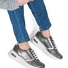 • Combinan cueros liso gris y metalizados peltre y plata. La fusión de estos tres tipos de cueros crea un diseño tricolor exclusivo, perfecto para usar con cualquier tipo de atuendo.