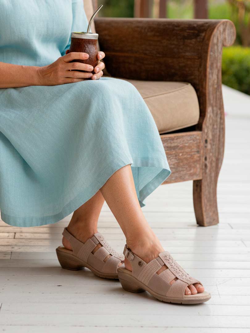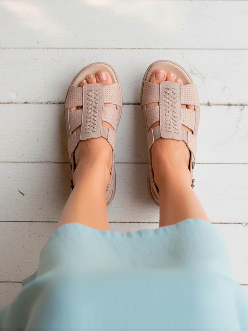 Tiras con elásticos: brindan sujeción y ventilación, manteniendo el pie cómodo.