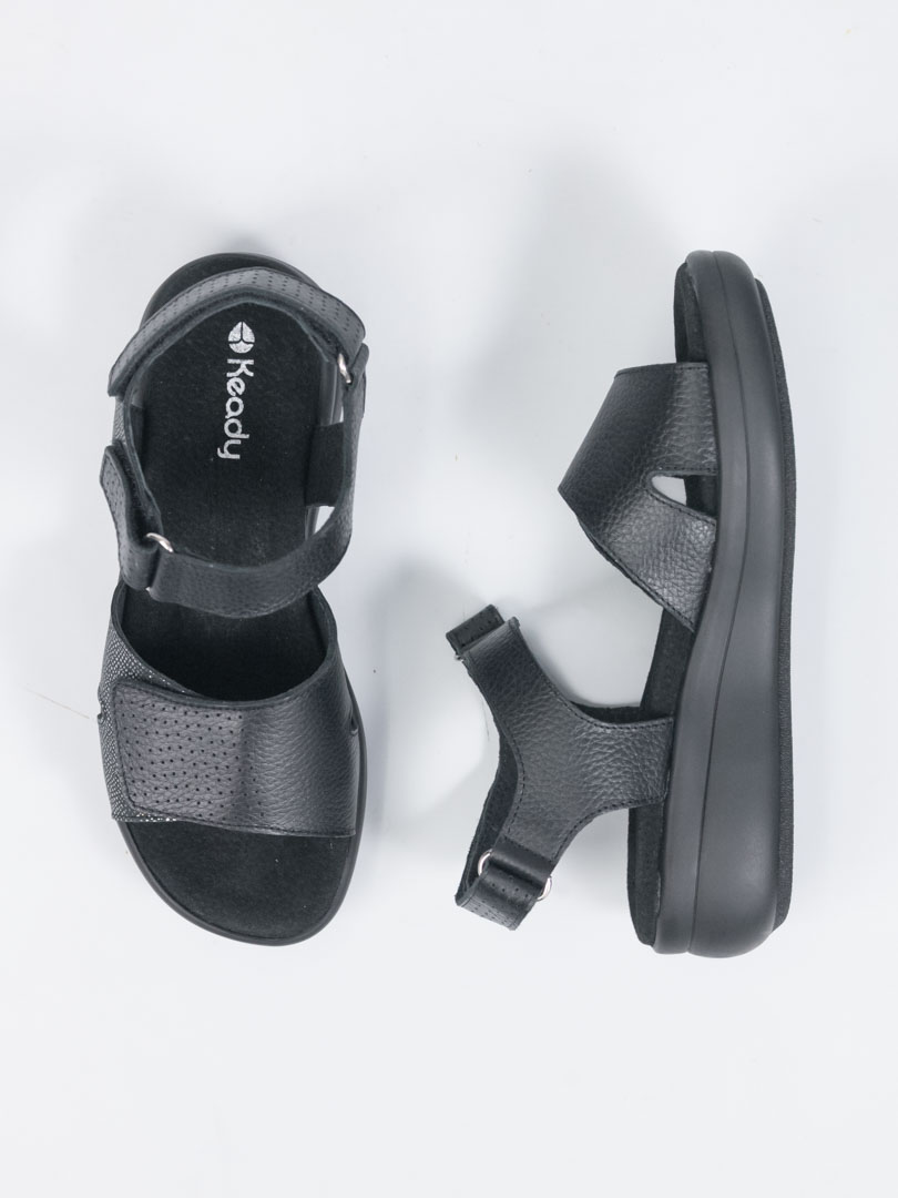 Sandalias de cuero Keady, diseñadas para combinar frescura, confort y estilo moderno con un toque brillante que realza cualquier look de temporada.