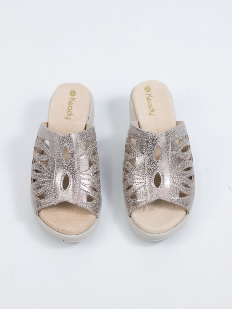 Diseño liviano y elegante que estiliza la silueta sin perder comodidad. Su capellada calada color peltre metalizado deja respirar el pie y aporta un toque sofisticado para el uso diario o salidas informales.