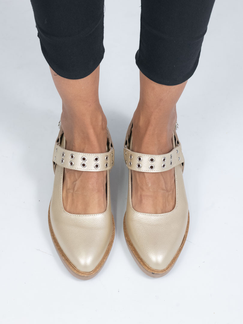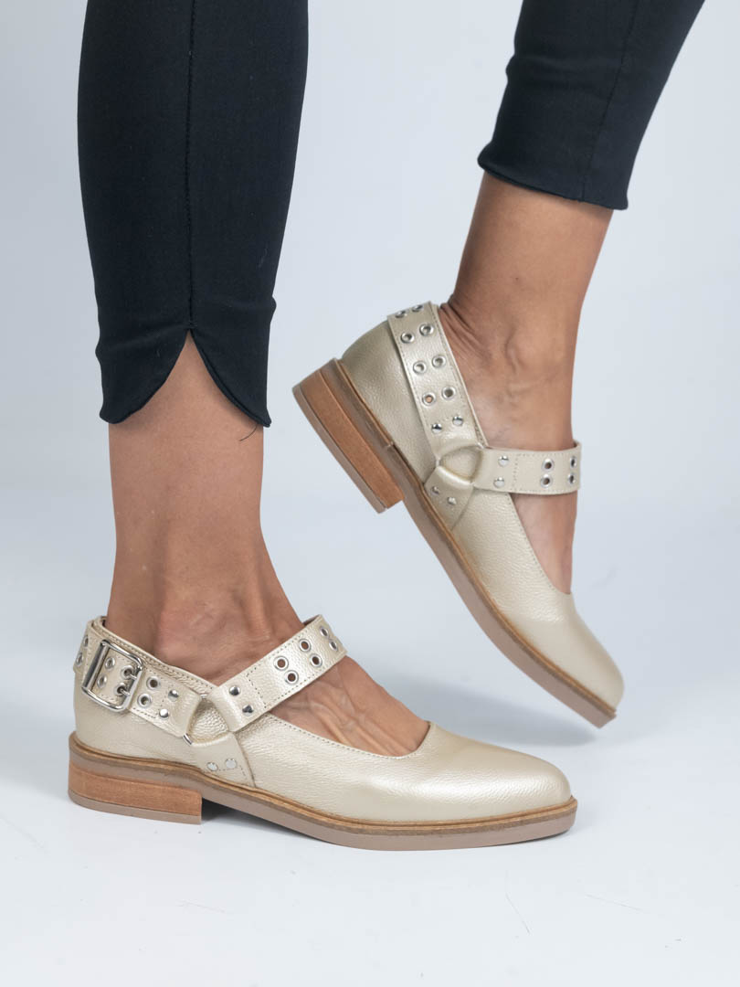Un clásico reversionado con vibra urbana. Estas guillerminas de cuero platino suman herrajes y ojalillos metálicos para un look moderno que levanta cualquier outfit.