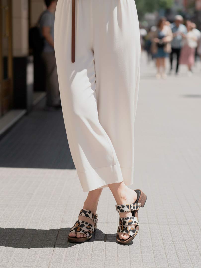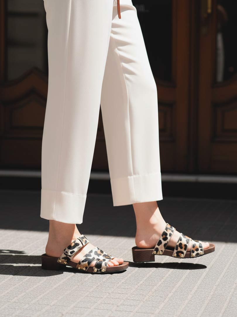 Un diseño minimalista con personalidad. Estas sandalias combinan un precios cuero pelo animal print con una base flexible de inspiración artesanal, logrando equilibrio entre estilo y confort.