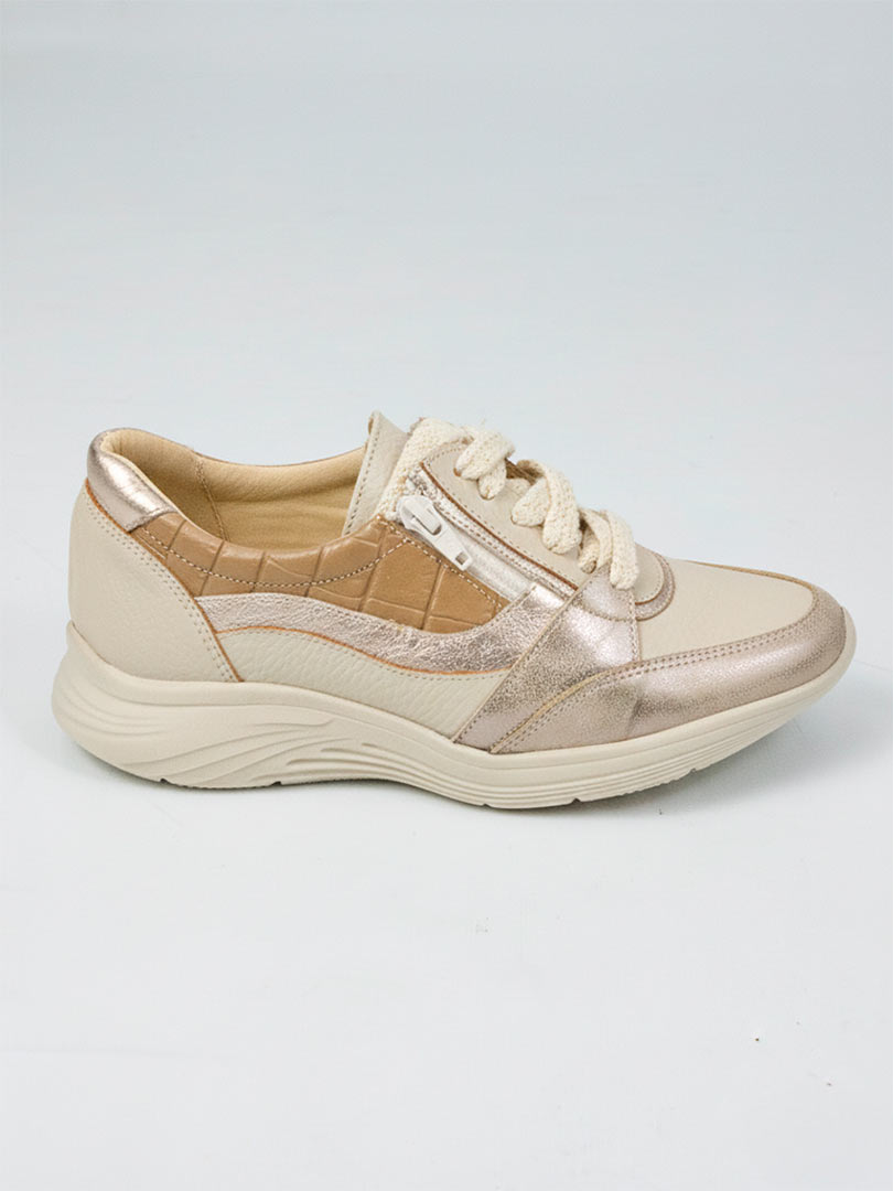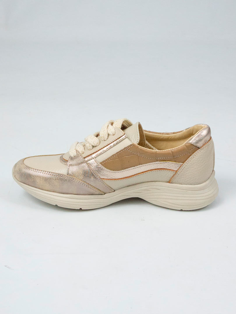 Su diseño incorpora cordones, elástico y cierre lateral, facilitando el calce y brindando mayor practicidad para el uso diario. La base flexible y liviana acompaña el movimiento natural del pie, mientras que el interior en cuero vacuno ofrece suavidad y respirabilidad durante todo el día.