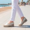 ines Libélula combinan un diseño moderno con la comodidad de un calzado de uso diario. Su confección en cuero vacuno de dos tonos hueso y platino crea un contraste elegante y versátil, ideal para looks casuales y semi-formales.