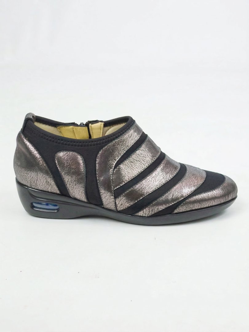 El modelo Niza Pewter combina diseño moderno y confort absoluto. Con una estética urbana y sofisticada en tono peltrer metalizado, este zapato está pensado para mujeres que buscan comodidad durante todo el día sin resignar estilo.