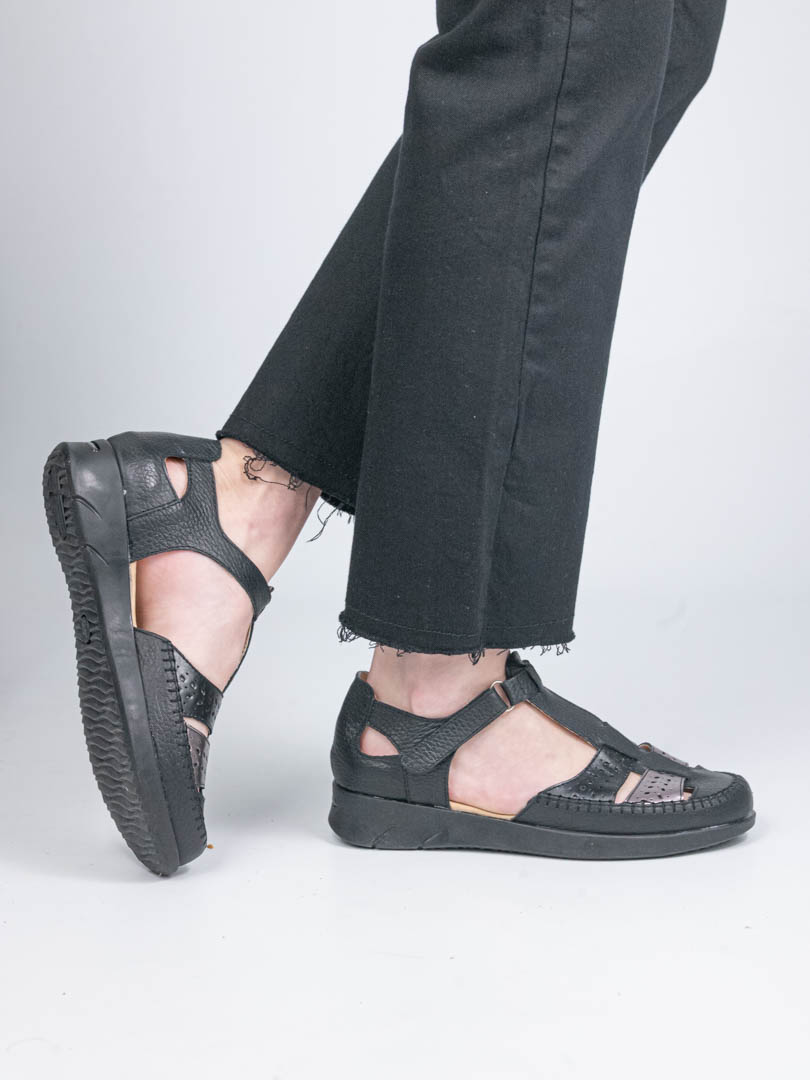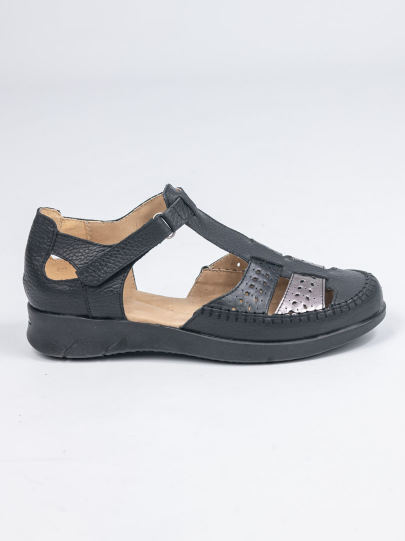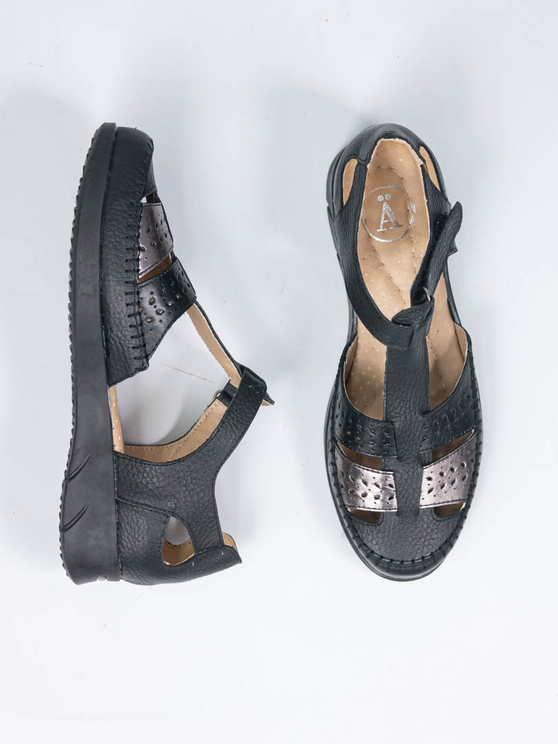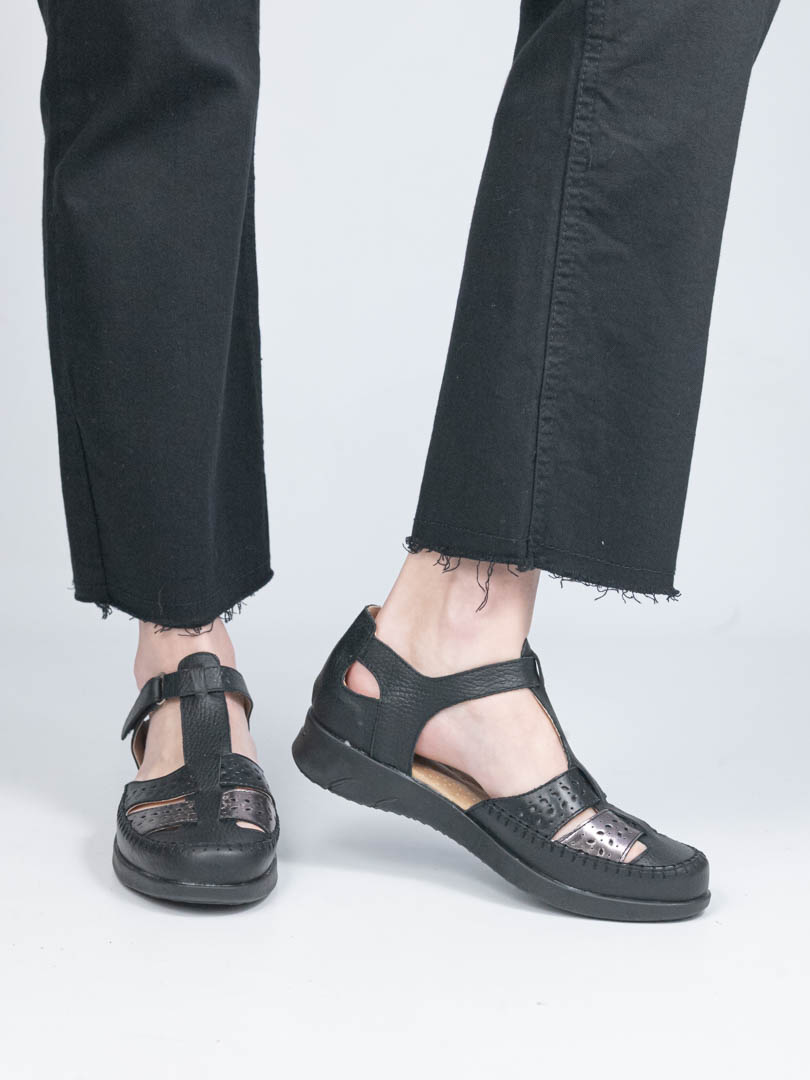 Estas sandalias Libélula combinan elegancia y practicidad en un diseño pensado para acompañarte en tu día a día con el máximo confort. Su confección en cuero vacuno negro con detalles metálicos aporta un estilo moderno y versátil, ideal para distintas ocasiones.