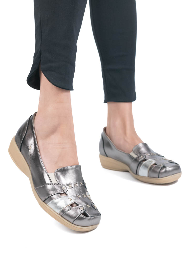 Urbanas confort de cuero marca Libélula de color peltre con detalles plata. Tiene dos elásticos laterales para ajustarlas a tu empeine y una plantilla super acolchonadas.