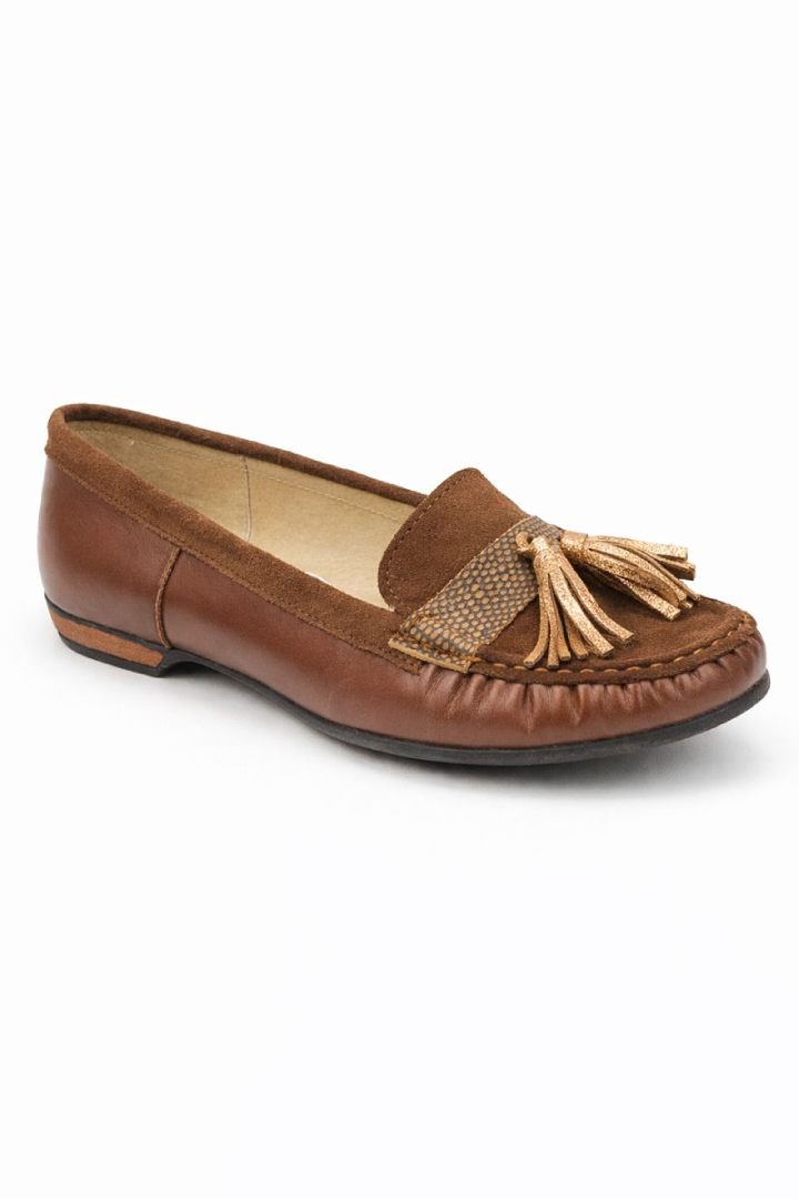 Modelo tipo mocasín, de calce fácil y suave, que se adapta naturalmente al pie sin generar presión.
