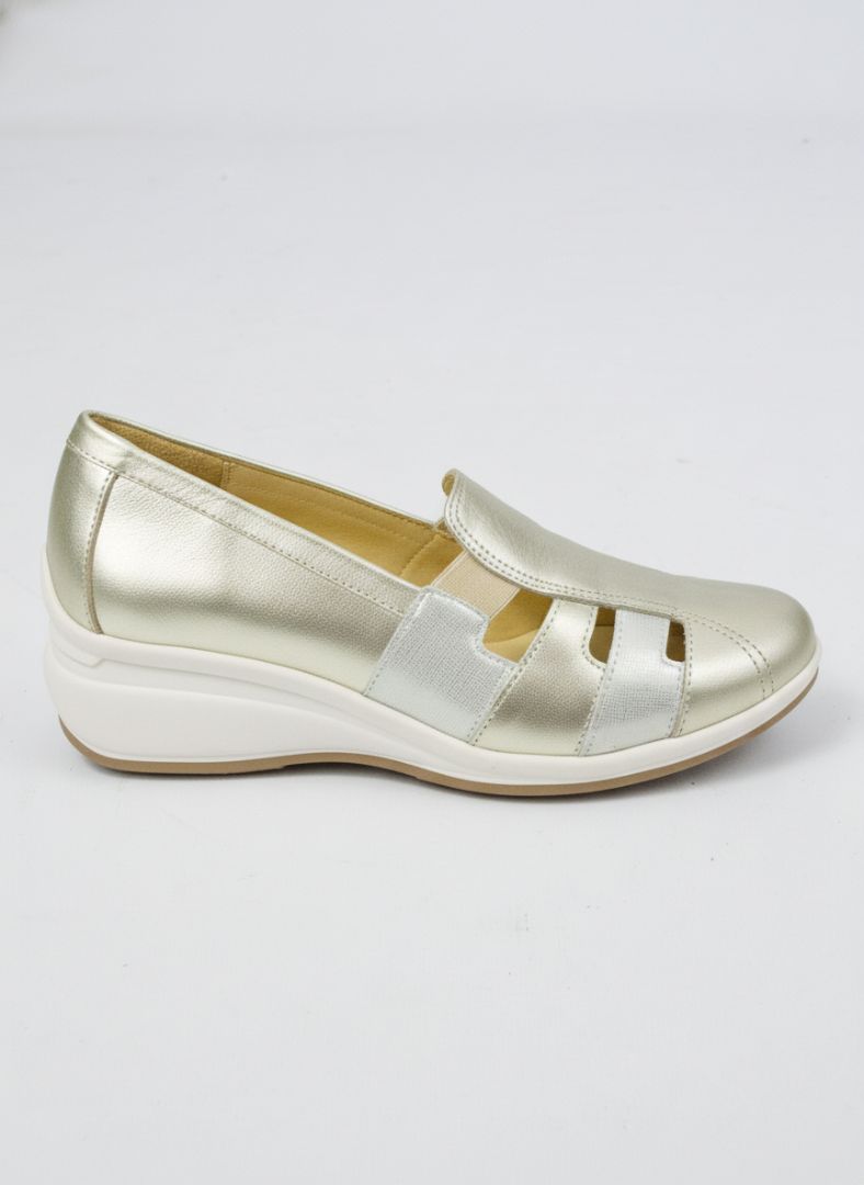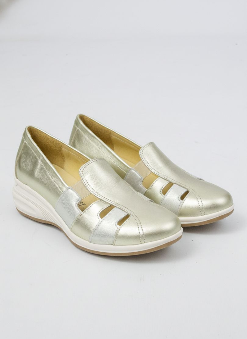 Zapatos Piscis Shoes línea Urbana Confort, de diseño funcional y femenino en tono platino, pensados para brindar comodidad y frescura en el uso diario.