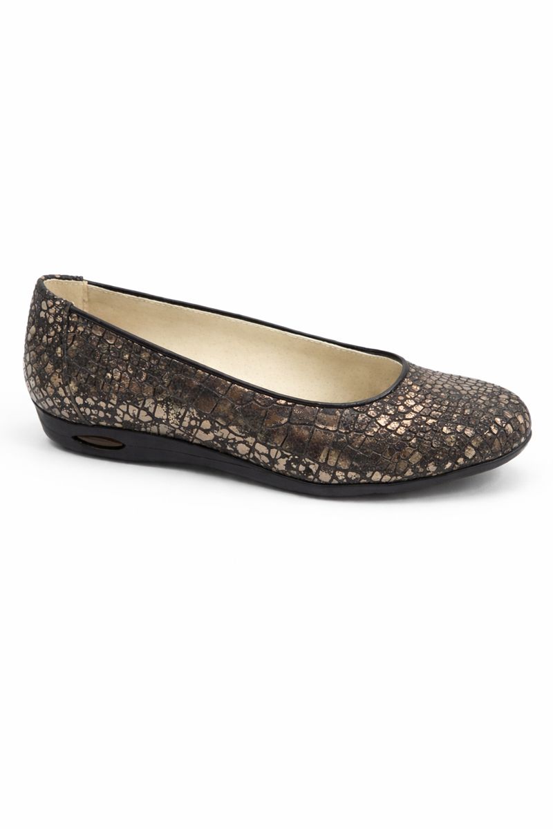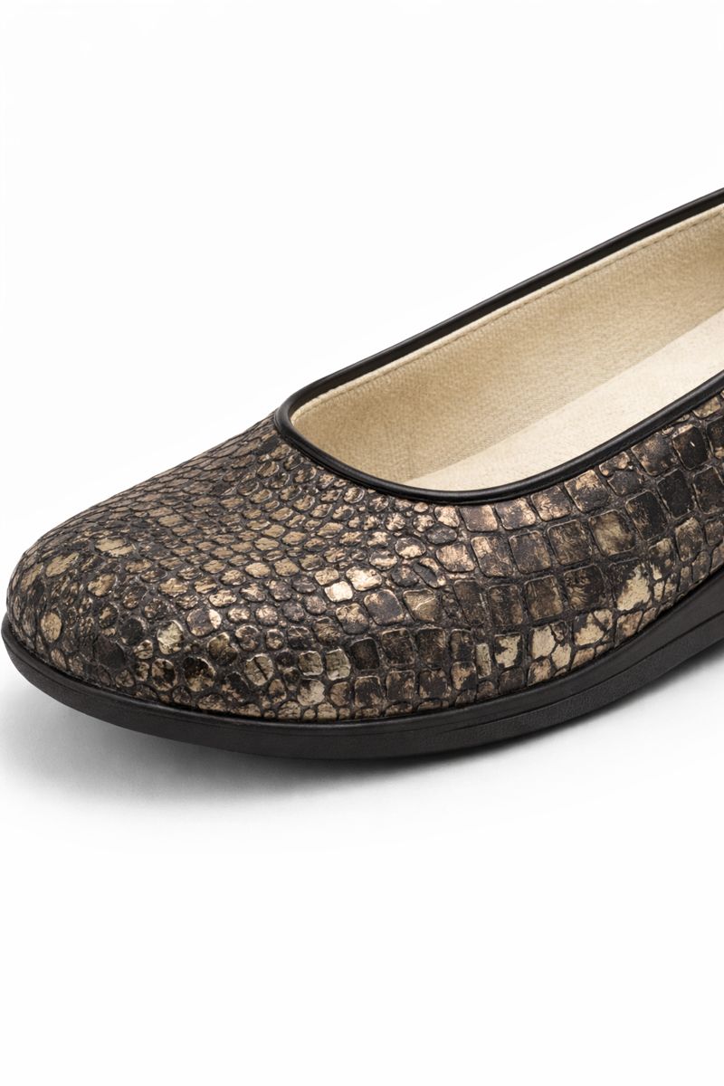 Diseño tipo balerina, cómodo y fácil de calzar, con buena sujeción del pie para el uso cotidiano.