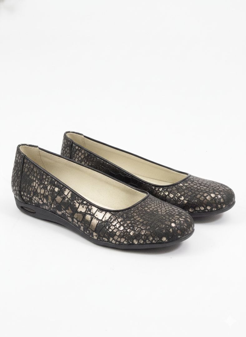 Zapatos Piscis Shoes de diseño clásico y elegante, con textura grabada y acabado metalizado sutil que aporta un estilo sofisticado y atemporal para el uso diario.