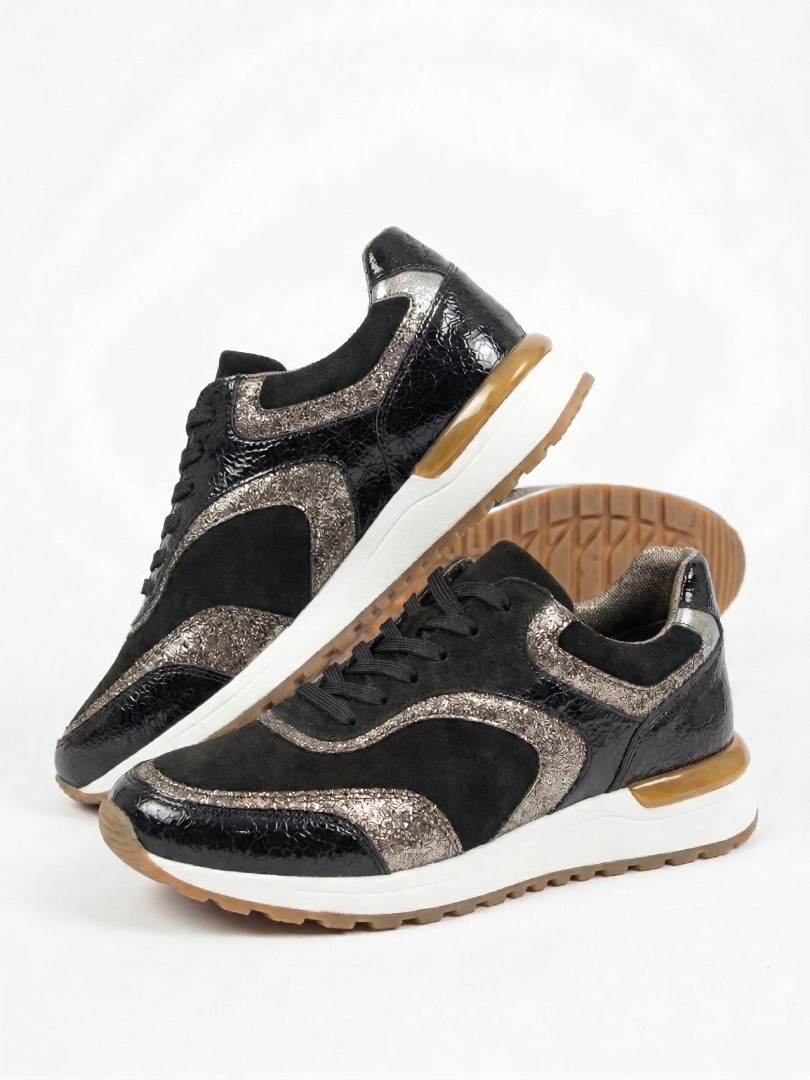 Mathilda Onix de Piscis es una zapatilla urbana que combina elegancia contemporánea y comodidad para el uso diario. Su diseño dinámico con contrastes metalizados aporta personalidad y sofisticación, ideal para looks urbanos modernos.