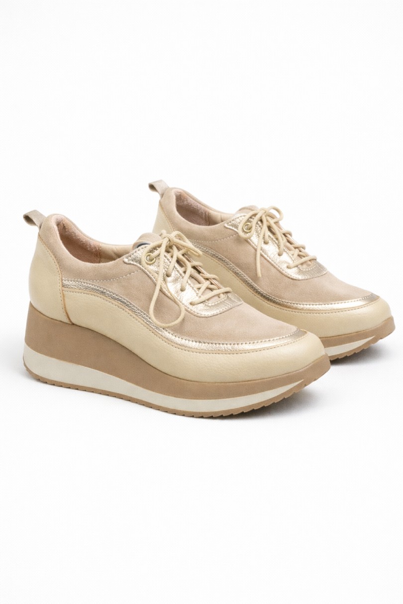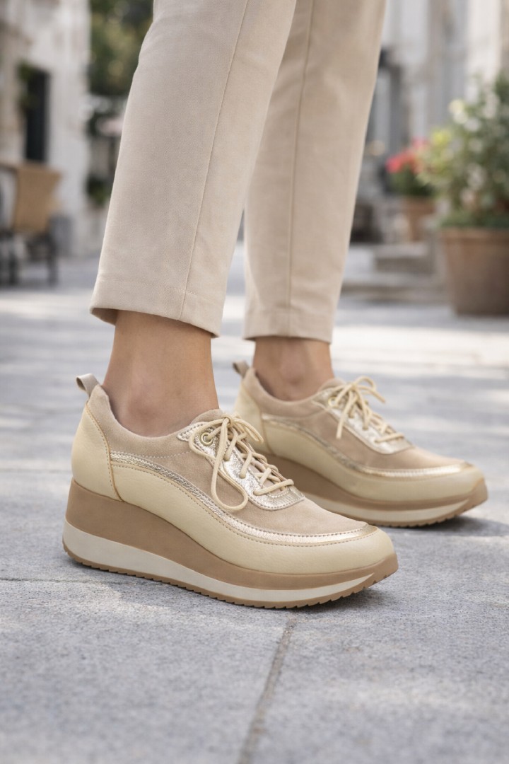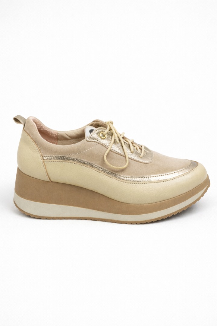 Merida Gold Sand de Piscis es una zapatilla urbana de la línea confort que combina diseño contemporáneo, detalles luminosos y una plataforma liviana pensada para acompañar el ritmo del día con estilo y comodidad.
