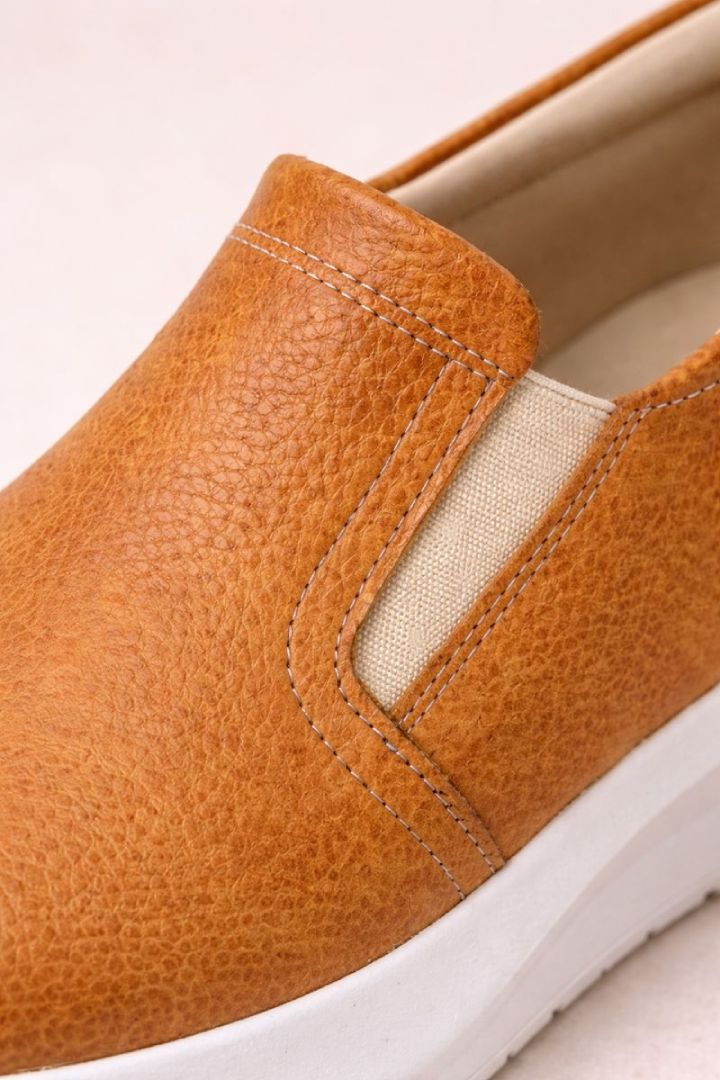 Confeccionada en cuero vacuno legítimo color suela, con detalle trasero texturado que aporta contraste sutil y carácter. Materiales suaves y flexibles que acompañan el movimiento natural del pie.