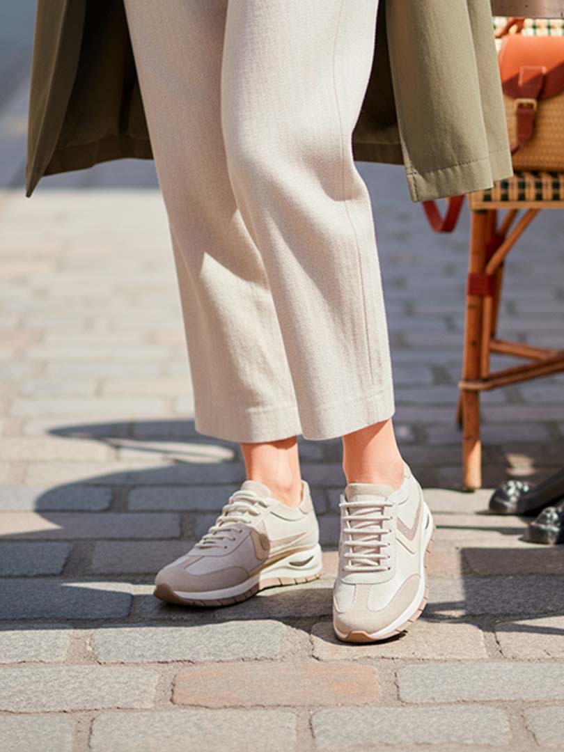 Un modelo pensado para acompañarte todo el día con estilo relajado y gran comodidad. Combina materiales suaves en tonos beige con detalles sutiles que elevan un look casual y moderno.