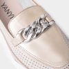 Mocasines moderno de cuero Marca Yanyk combinando cueros platino con picado en sus laterales.