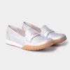 Mocasines modernos de cuero liso color plata Marca Yanyk.