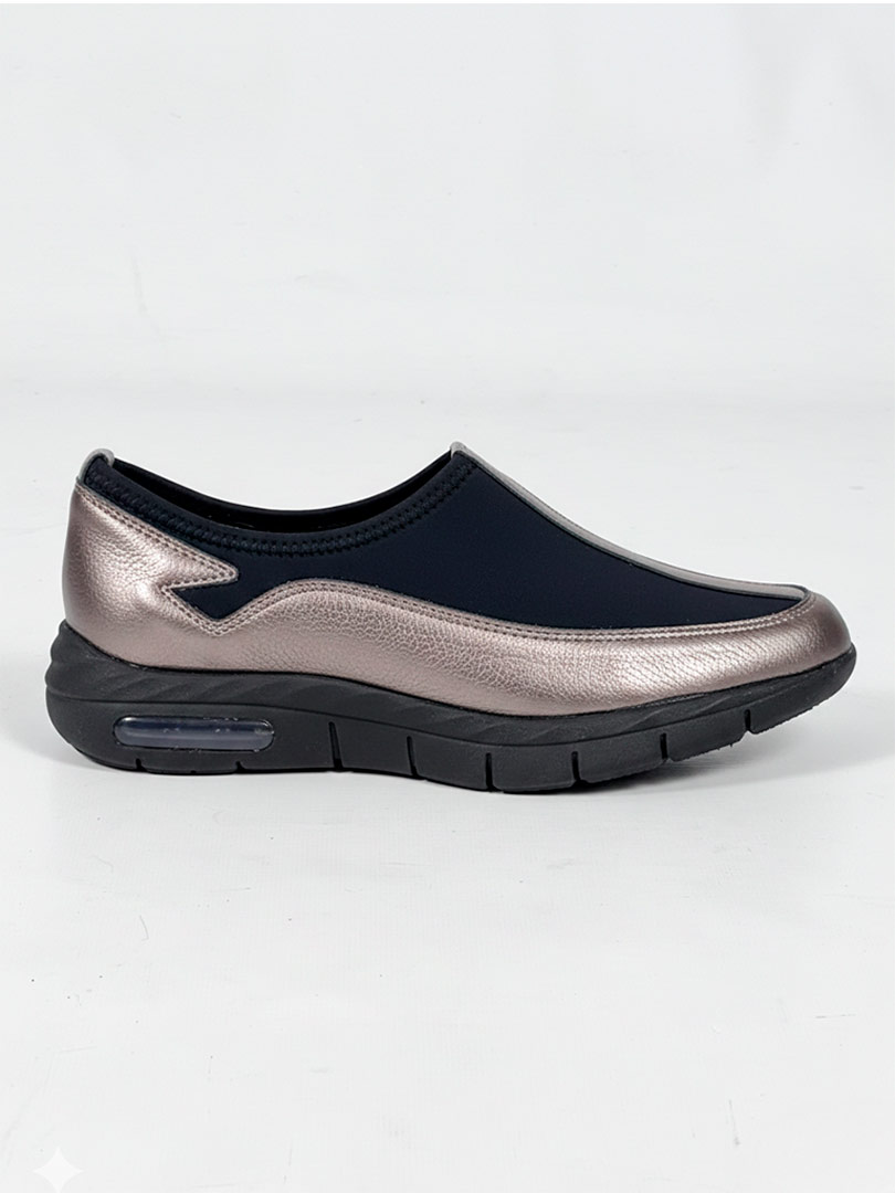 Capellada combinada en cuero vacuno: Color metalizado floter peltre. Aporta estructura, resistencia y un look dinámico.