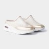 Zuecos deportivos de cuero Marca Yanyk realizado en cuero liso color natural con detalle en color oro.